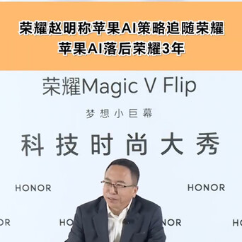 #荣耀赵明称苹果AI落后荣耀三年# 在昨天的荣耀Magic V Flip发布会后采访环节中,赵明表示,苹果在WWDC24上展示的AI理念是荣耀3年前所讲的和现在所做的。#荣耀赵明称苹果AI策略正在追随荣耀#